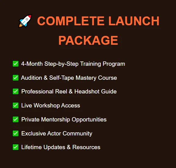 "I built The Actor's Launchpad to give you the exact roadmap I wish I had when starting out. No more guessing, no more overwhelm - just the clear path to your first paid role."